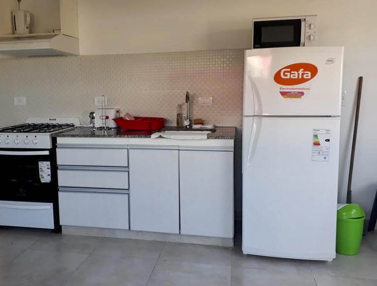 vajilla completa, horno, heladera, microondas y minipimer.